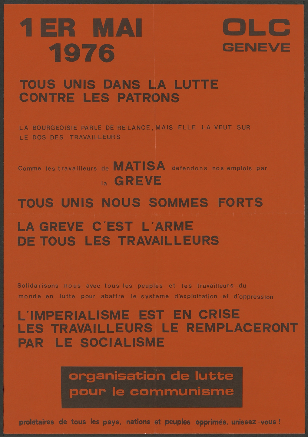 Affiche pour le 1er mai 1976, référence à la grève des travailleurs de Matisa.