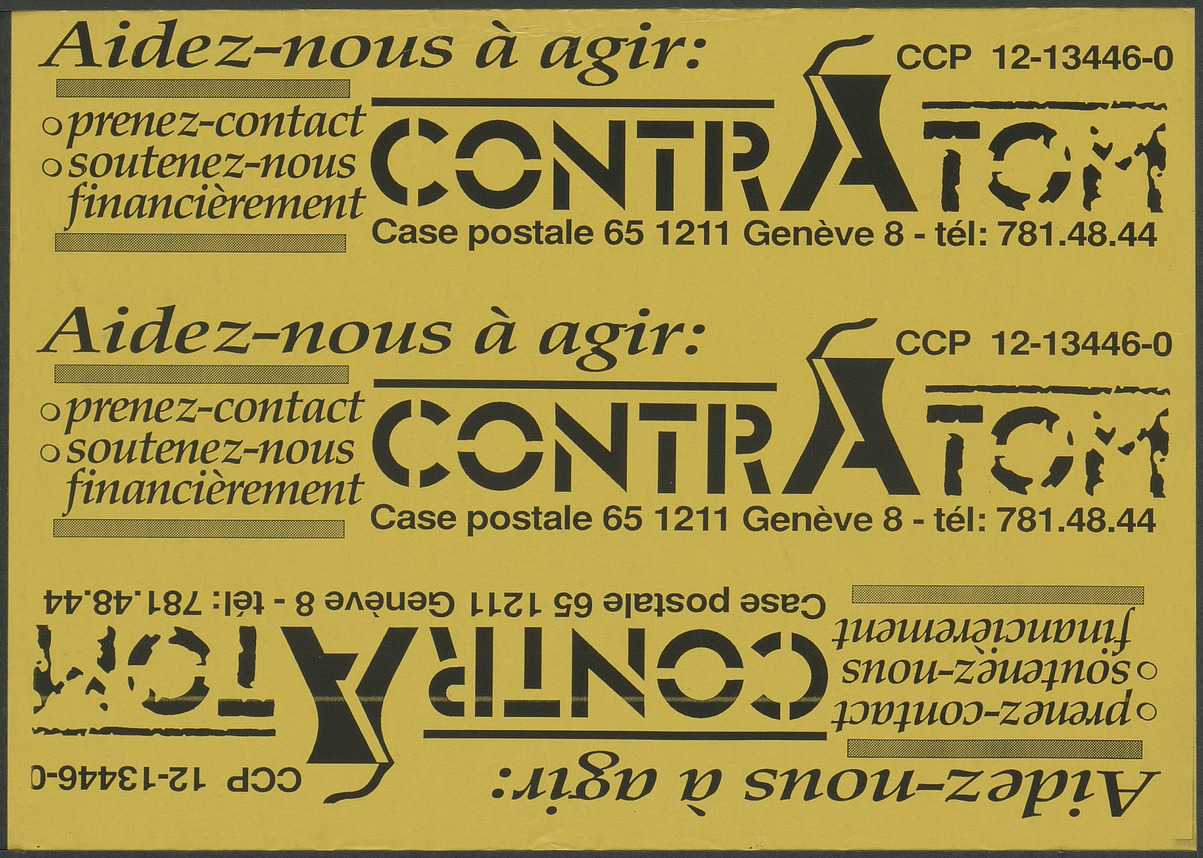 ContrAtom est une association, reconnue d’utilité publique, fondée à la fin de 1985 pour s’opposer à la foire du nucléaire (ENC’86) qui se tenait à Palexpo (Genève) en juin 1986. 3000 personnes manifestèrent contre cette foire et celle de 1990 (ENC’90) fut précipitamment déplacée à Lyon…