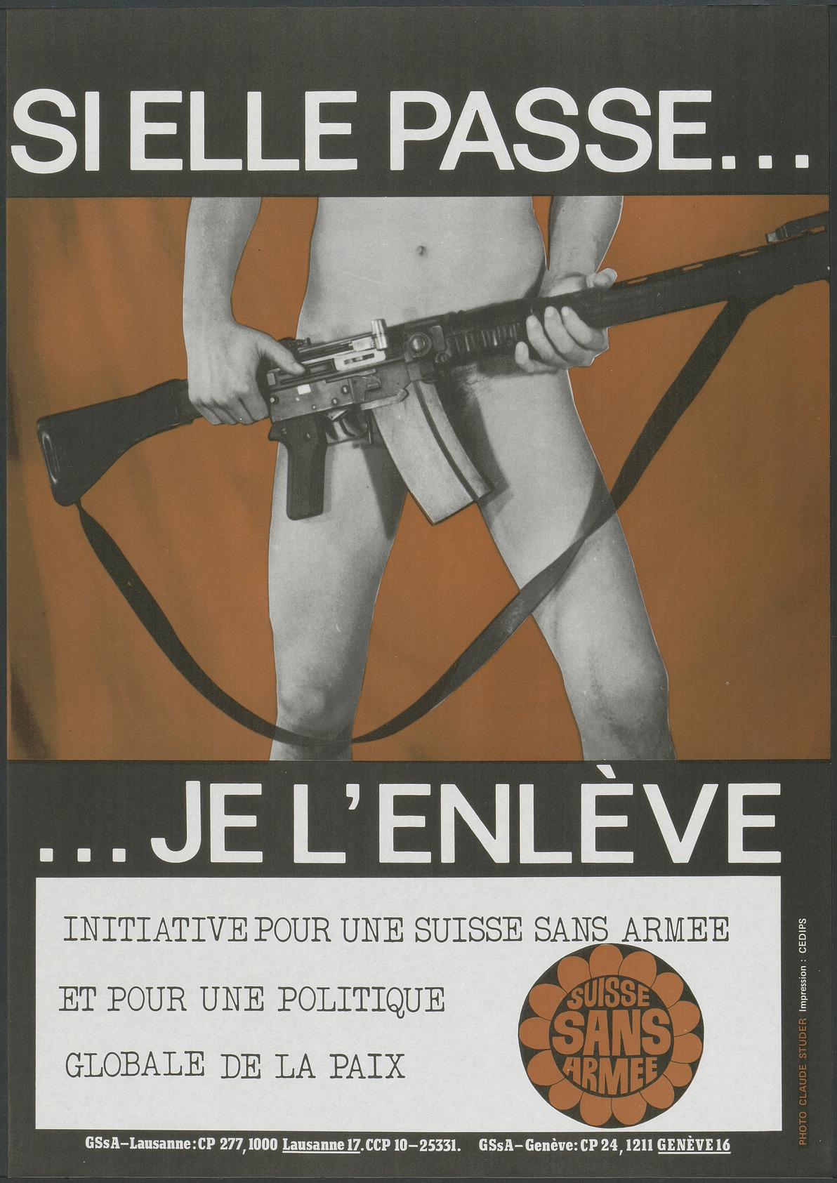 1986 Première initative pour l’abolition de l’armée. L’initiative «Pour une Suisse sans armée et une politique globale de paix» est lancée le 21 mars 1985. L’initiative est validée avec 111’300 signatures valables.