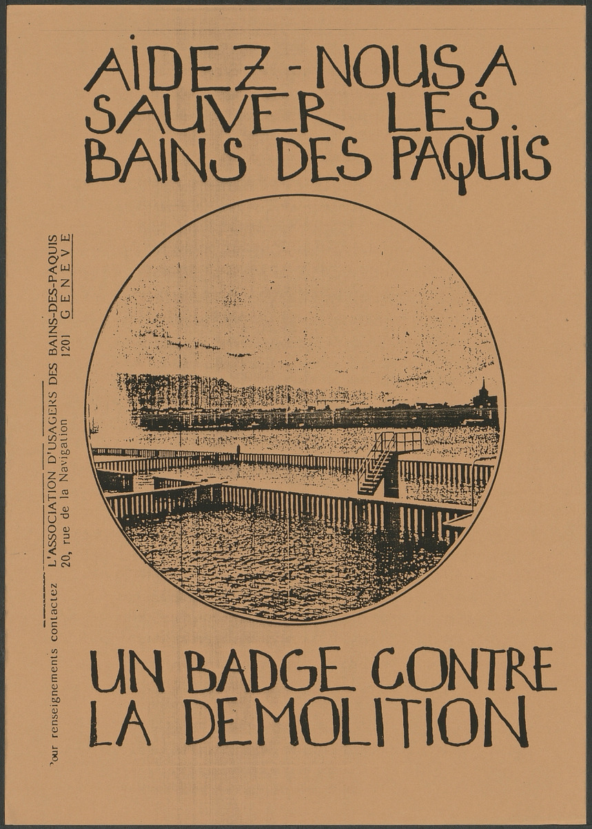 En 1987, la Ville de Genève, propriétaire des bâtiment, affirme que les bains risquent de s’effondrer, d’où la nécessité de les démolir et de reconstruire à neuf. L’AUBP souhaite empêcher la démolition. Elle dépose dans ce but une pétition qui demande :