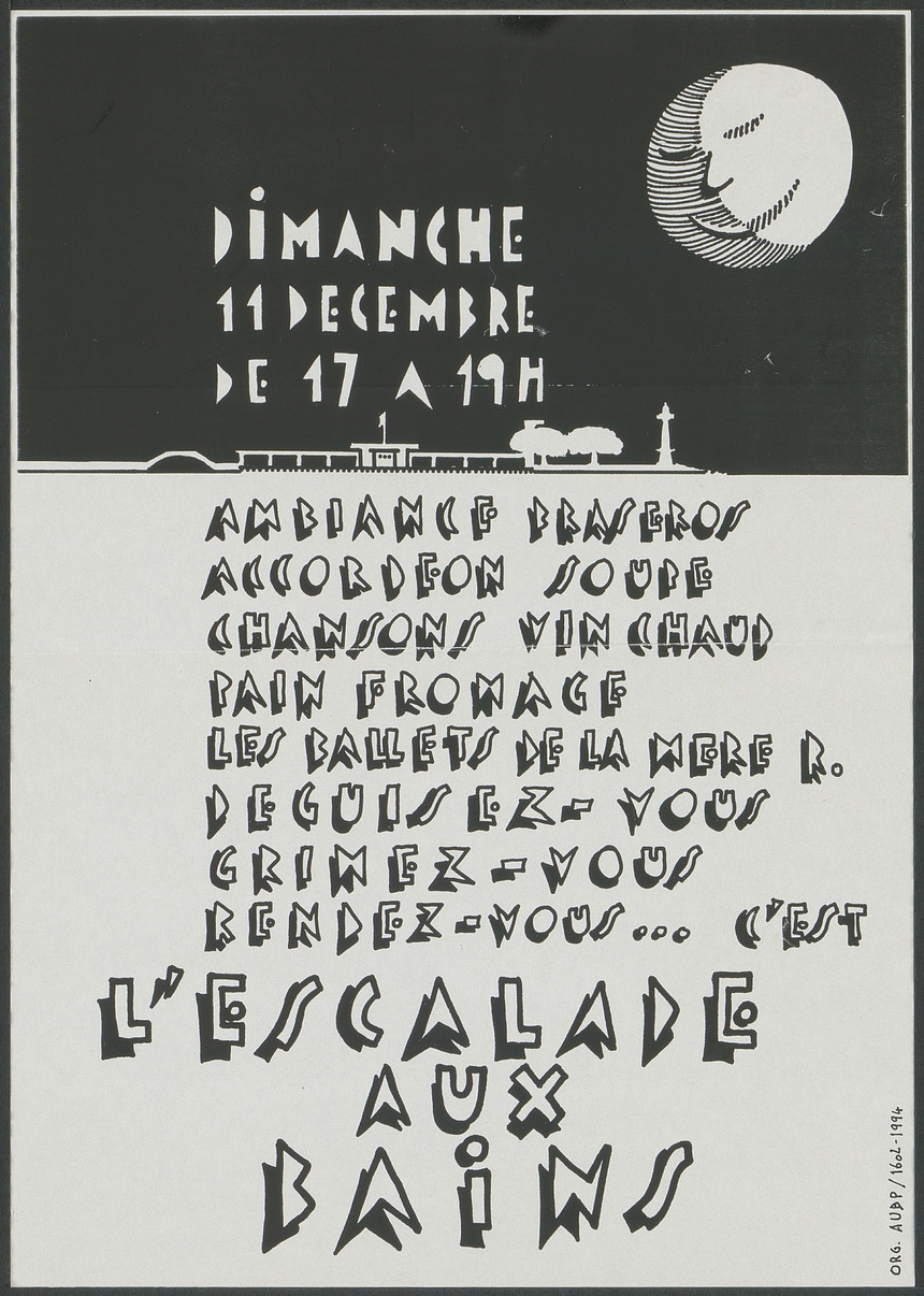 L’Association des usagers des bains des Pâquis a été fondée en février 1987. La Ville de Genève projetait alors de démolir et reconstruire les bains des Pâquis sur la rive droite de la rade de Genève. Ces bains publics, en béton armé, datent de 1931-1932 date à laquelle l’infrastructure des bains déjà existant a été augmentée avec l’ajout d’une buvette, de cabines supplémentaires, etc.