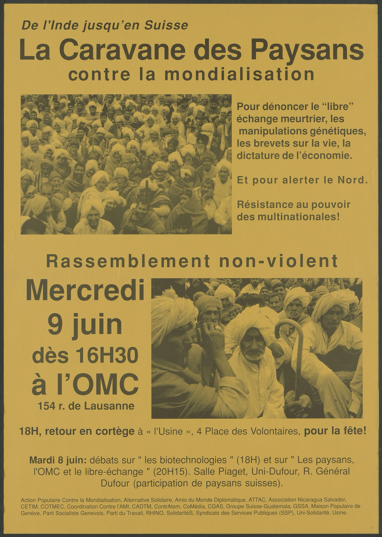 Collectif genevois membre du réseau de l'Action Mondiale des Peuples (AMP), constitué après la fondation de l'AMP à Genève en 1998.