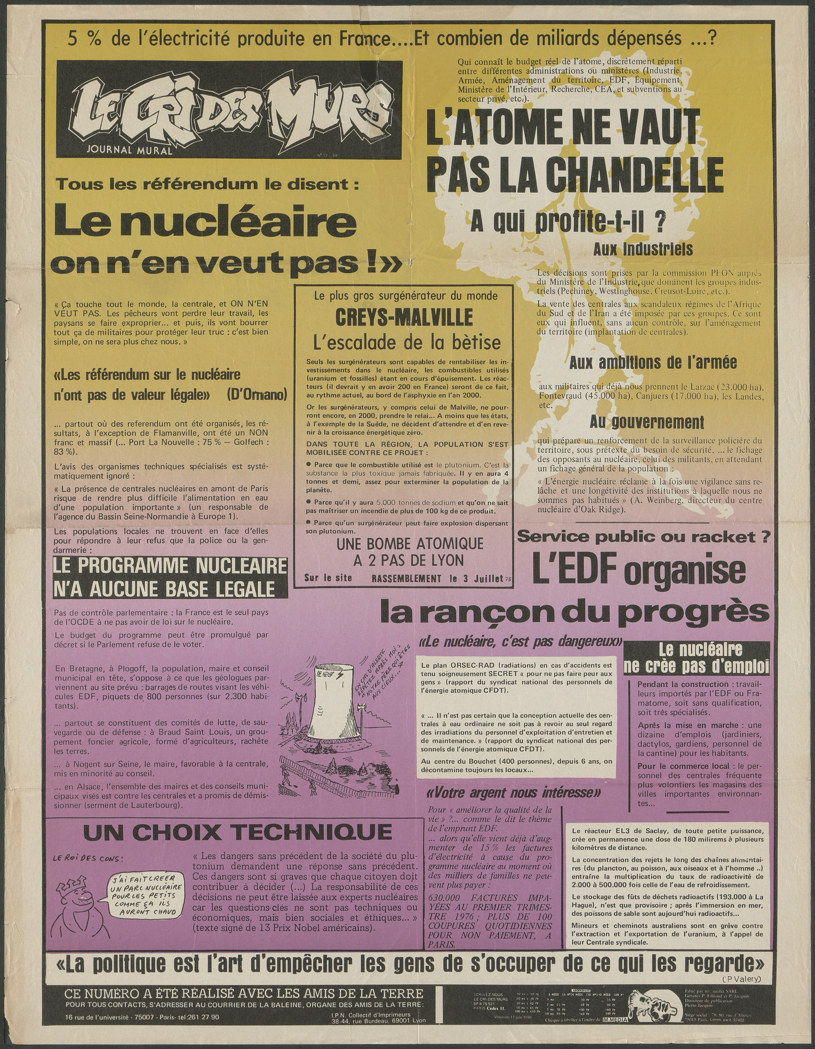Journal mural sur les luttes antinucléaires en France, avec un encadré sur la centrale de Creys-Malville.