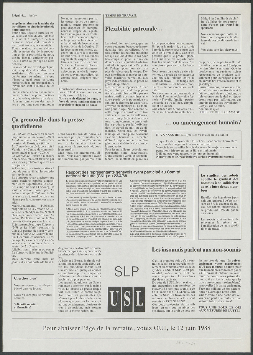 Les typographes sont les pionniers des conventions de travail et n’hésitent pas à se mettre en grève pour montrer leur mécontentement. En 1926 le SLP créer une section féminine, après avoir longtemps refuser d’accueillir les femmes et les ouvrier non qualifiés au sein du syndicat. Dans un premier temps les différentes associations syndicales telles que le SLP ou L'Union suisse des lithographes, refusent de fusionner malgré leur adhésion commune à l’Union syndicale suisse. Cependant, le développement technologique conduit à la déqualification progressive de certains métiers de l’imprimerie forçant ainsi les différents syndicats à fusionner.