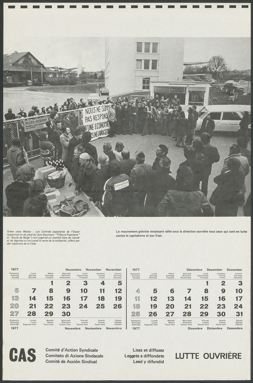 Calendrier de soutien au CAS 1977 - novembre, décembre