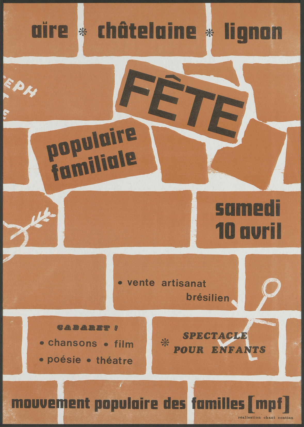 Affiche pour une fête des quartiers Aïre, Châtelaine, Lignon. Vente d'artisanat brésilien, cabaret, spectacle pour enfants.