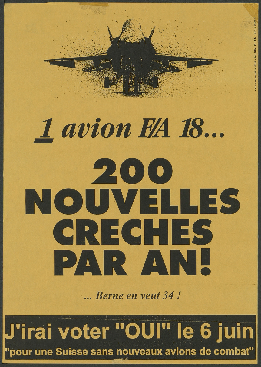 « 1 avion F/A-18... 200 nouvelles creches par an ! ... Berne en veut 34 ! »