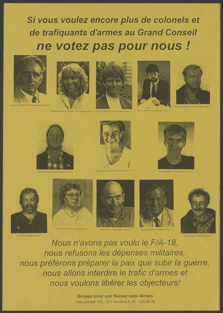 « Si vous voulez encore plus de colonels et de trafiquants d'armes au Grand Conseil, ne votez pas pour nous ! »