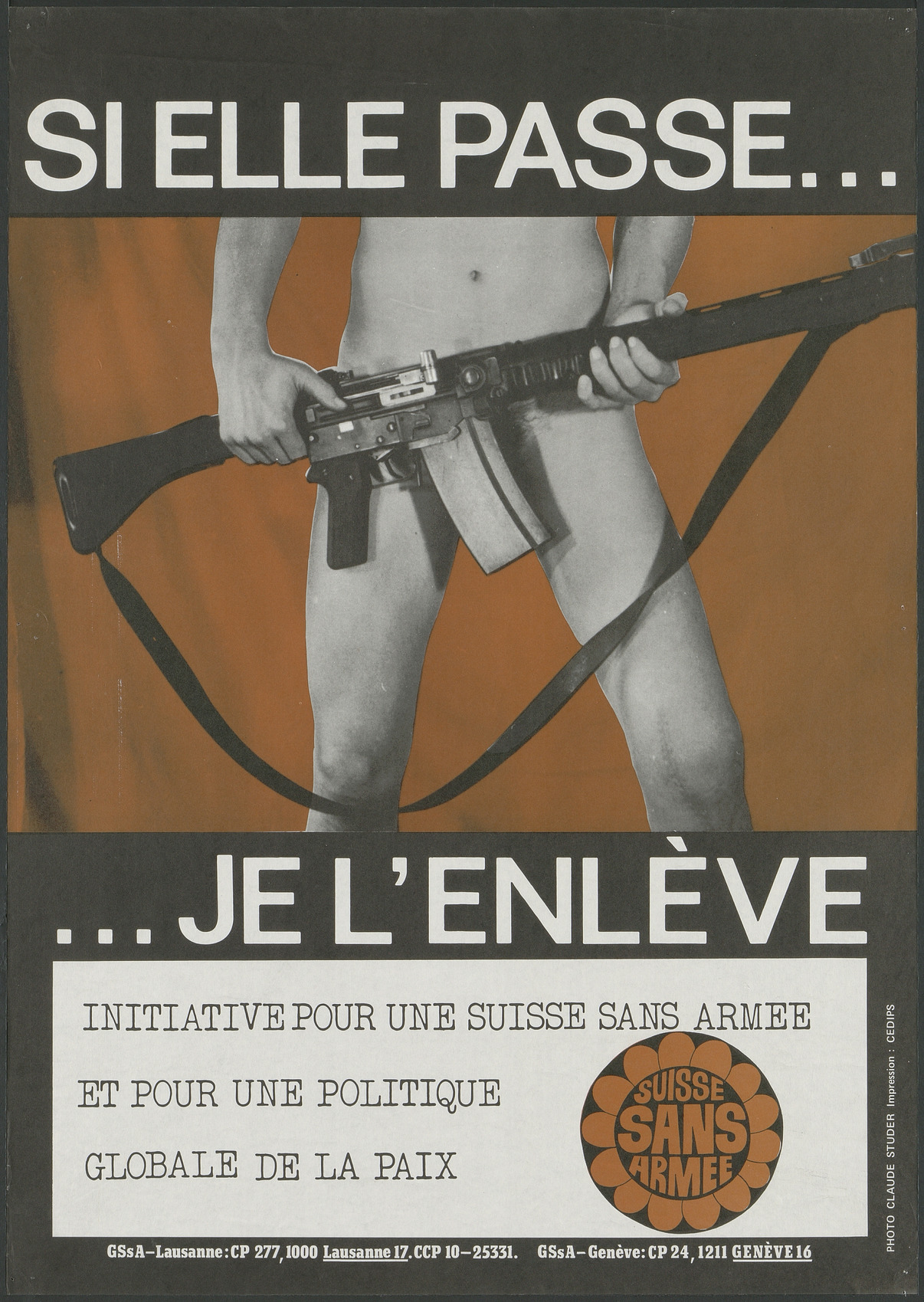 1986 Première initative pour l’abolition de l’armée. L’initiative «Pour une Suisse sans armée et une politique globale de paix» est lancée le 21 mars 1985. L’initiative est validée avec 111’300 signatures valables.