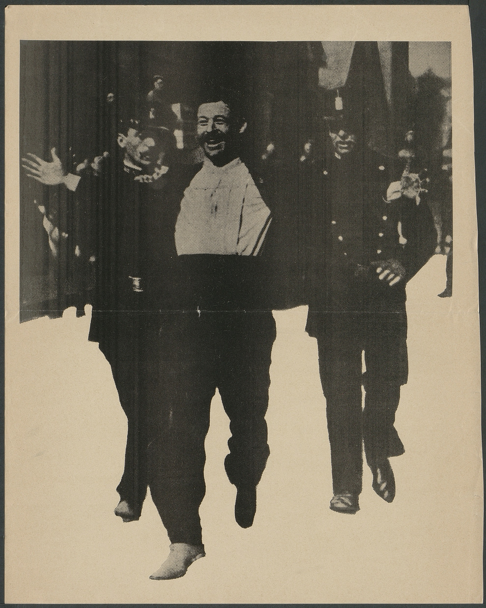 [Arrestation d’un gréviste annonçant un spectacle]