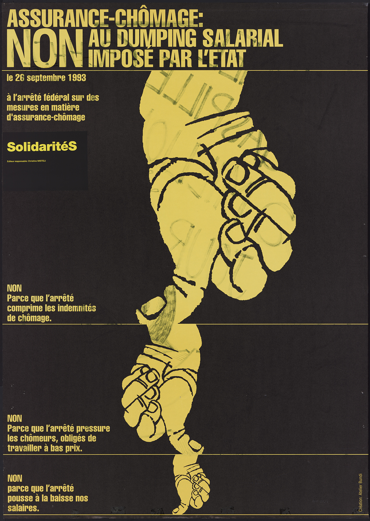 Affiche appelant à voter contre l’arrêté fédéral sur les mesures en matière d'assurance-chômage.
