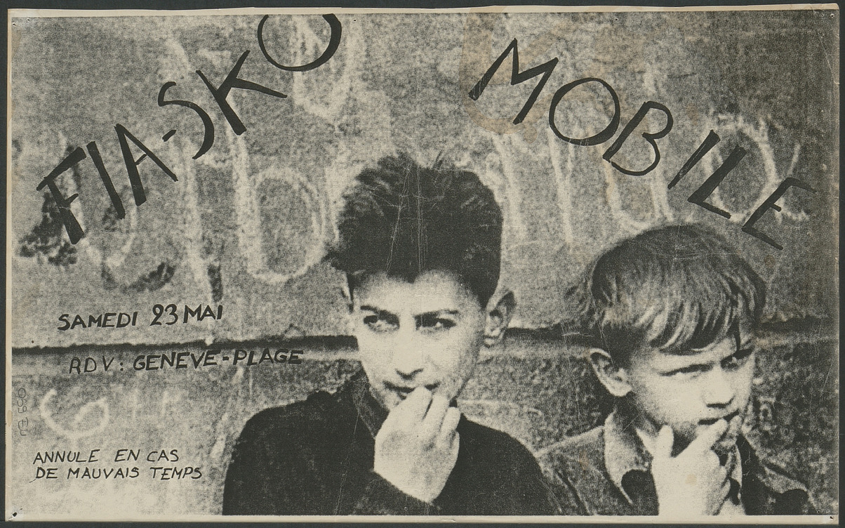 Affiche pour une Fia-sko mobile à Genève Plage. Photographie représentant deux jeunes adossés à un mur, regardant dans des directions opposées, se rongeant les ongles.