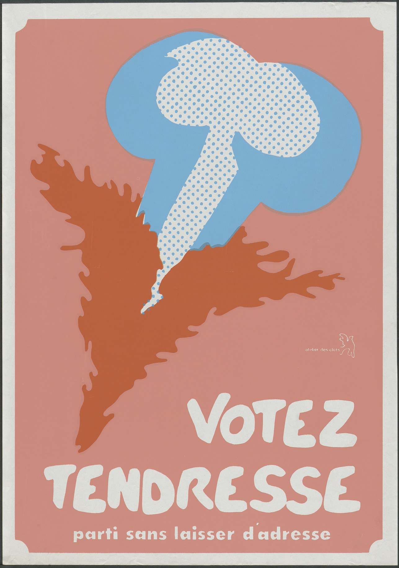 « Votez tendresse, parti sans laisser d'adresse ». Dessin représentant une pénétration.