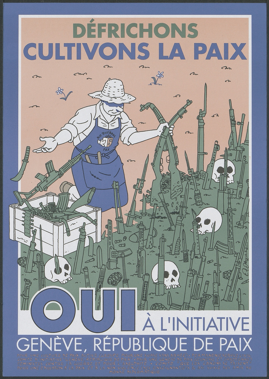 1986 Première initative pour l’abolition de l’armée. L’initiative «Pour une Suisse sans armée et une politique globale de paix» est lancée le 21 mars 1985. L’initiative est validée avec 111’300 signatures valables.