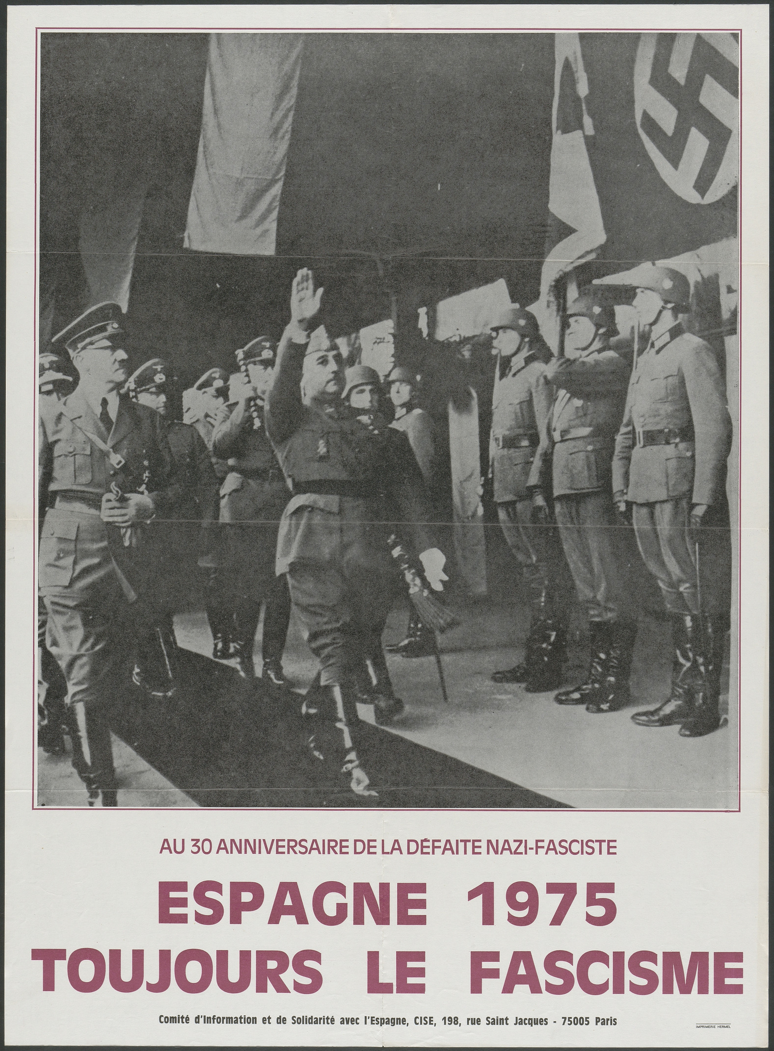 Affiche à l'occasion du 30ème anniversaire « de la défaite nazi-fasciste ». Photographie de soldats nazis.