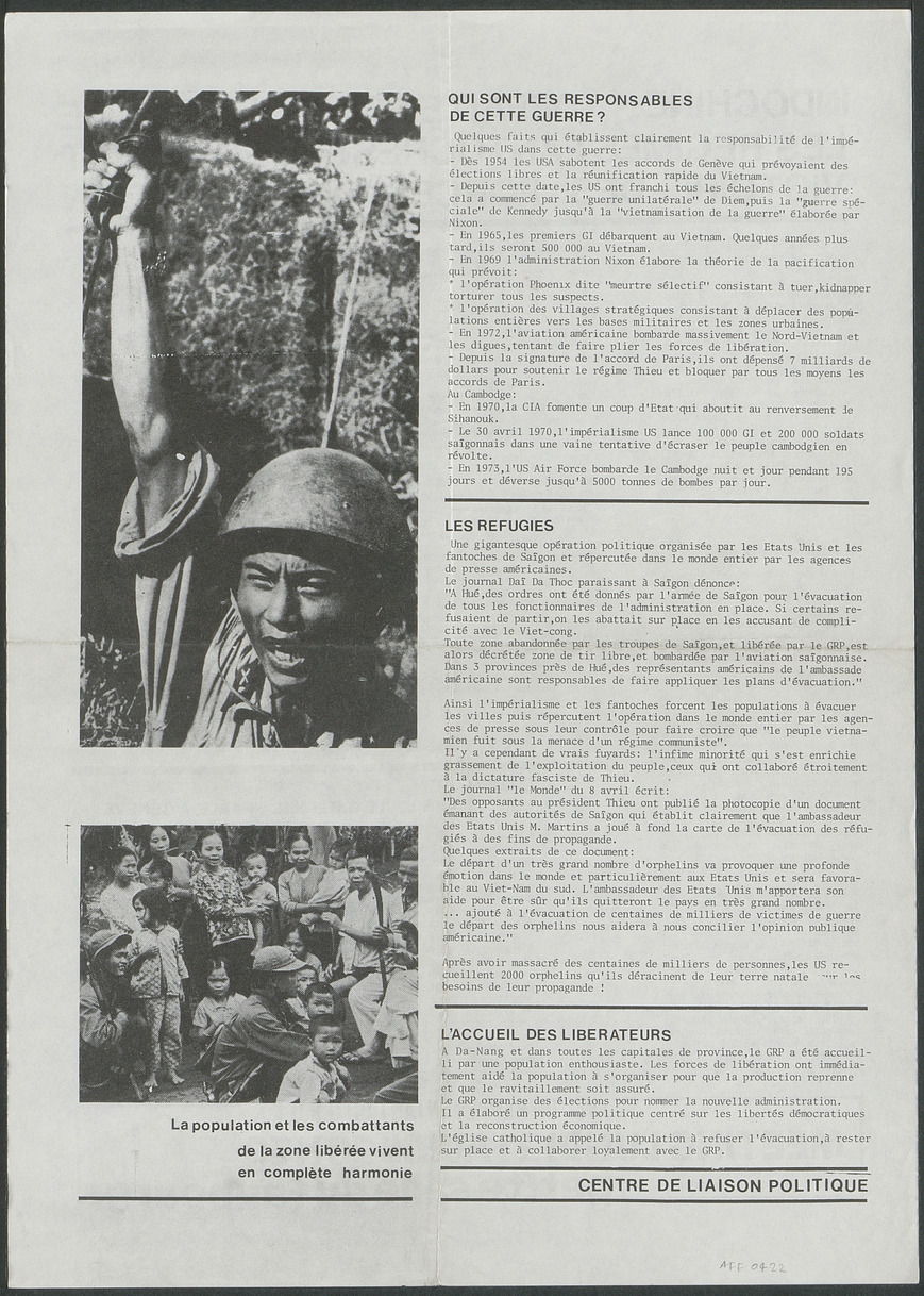 Affiche-tract anti-impérialiste sur les guerres au Cambodge et au Vietnam. Meeting avec un représentant du