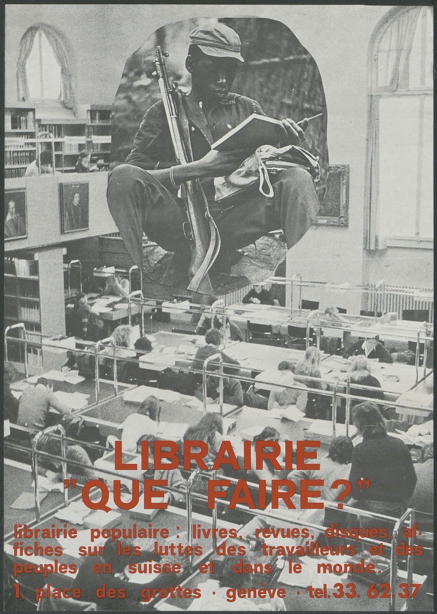 « Librairie populaire : livres, revues, disques, affiches sur les luttes des travailleurs et des peuples en suisse et dans le monde ».
