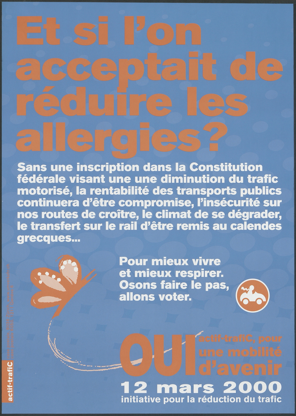 Affiche appelant à voter pour l'Initiative pour la réduction du trafic.