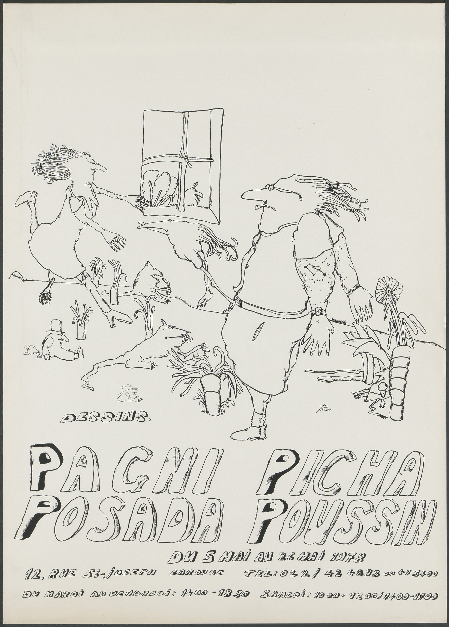 Affiche probablement pour une exposition de dessins de Pagni, Picha, Posada et Poussin à Carouge.